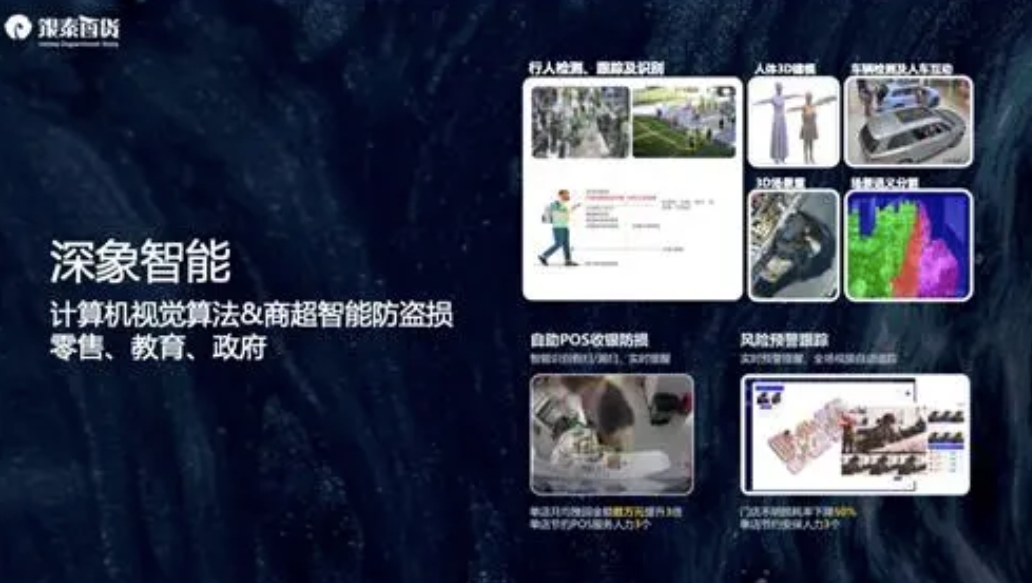 接着,觉奥博士介绍了深象智能——这个为银泰商业集团提供科技支持的公司。“我们的工作可以理解为给镜头装上‘大脑’,通过视觉AI、场内地图建模、IoT设备和数据分析技术,来理解线下空间真实发生的情况。”他举例说,无论是商超中鱼缸的水质状况,还是学校走廊是否有学生在玩耍,甚至停车场是否有车辆违停,这些都可以被镜头捕捉并解读。