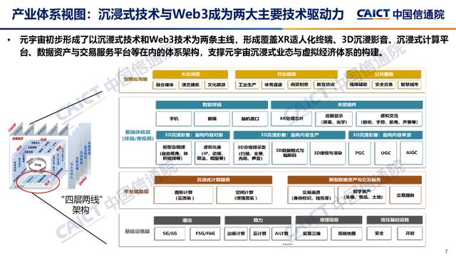 元宇宙产业体系包括基础设施层、平台赋能层、前端体验层、创新应用层四部分。